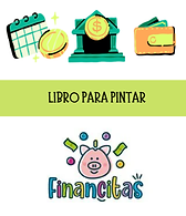 Material lúdico y educativo que introduce a los niños en el mundo de las finanzas personales a través del arte y el juego. Cada página propone situaciones cotidianas ilustradas que invitan a colorear y reflexionar sobre conceptos como el ahorro, el valor del dinero, el trabajo y la planificación.